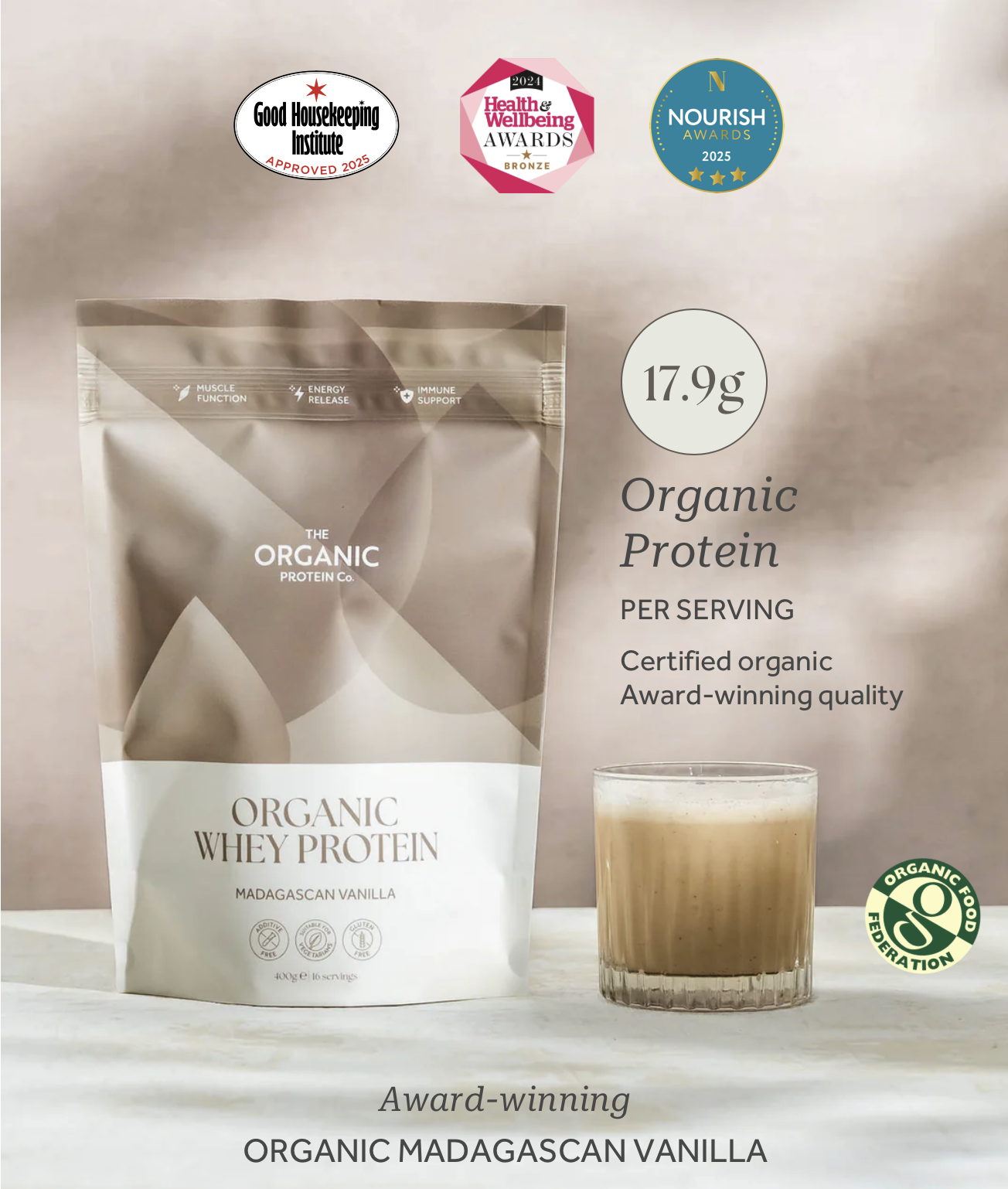 Mix 2 scoops (50 g) Madagascan Vanilla Organic Whey Protein with 100 ml organic whole milk and 100 ml water. Stir or shake until smooth.