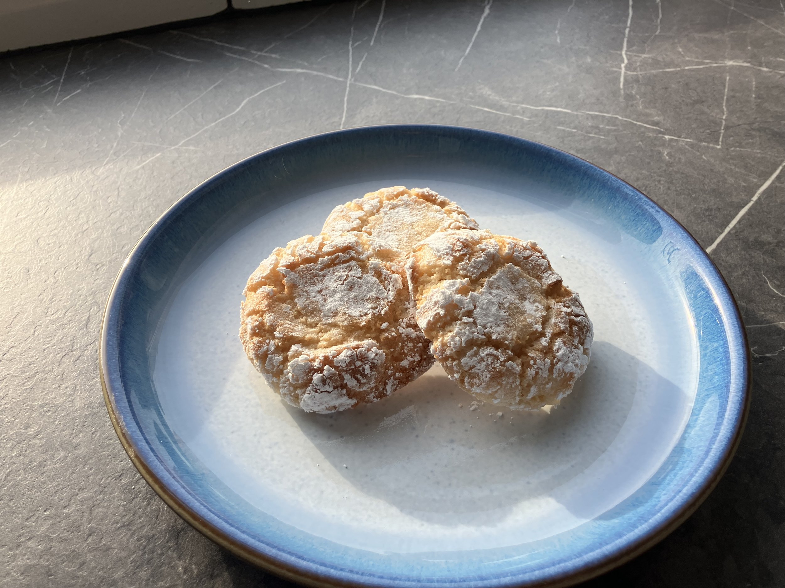 Chewy, nutty, and naturally gluten-free — these amaretti biscuits are made with ground almonds, aquafaba, and vanilla. Lightly crisp on the outside, soft in the middle, and finished with a classic icing sugar crackle.